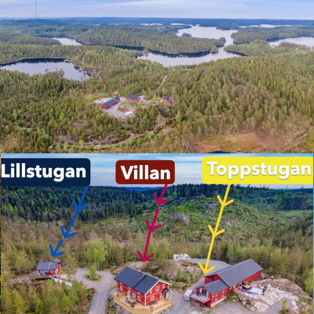 Visa hänsyn mot varandra och inga stora fester är tillåtna . Om man inte hyr alla tre husen samtidigt då har vi sammanlagt 24 sängplatser + några husvagn/bil platser att hyra ut. Hyr man alltihop så kan man ha fester, m.m. Vi har en pärm i alla tre stugorna med tips på aktiviteter i närheten och vart man slänger sorterat avfall.